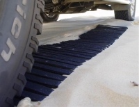 X-Trax and other recycled car tyre type mats are made from steel wire used to cable strips of rubber together to form a long mat to drive on. Similar in performance to strips of carpet or shade cloth, the X-Trax also provide limited support in sand and cannot be used as a bridge device.