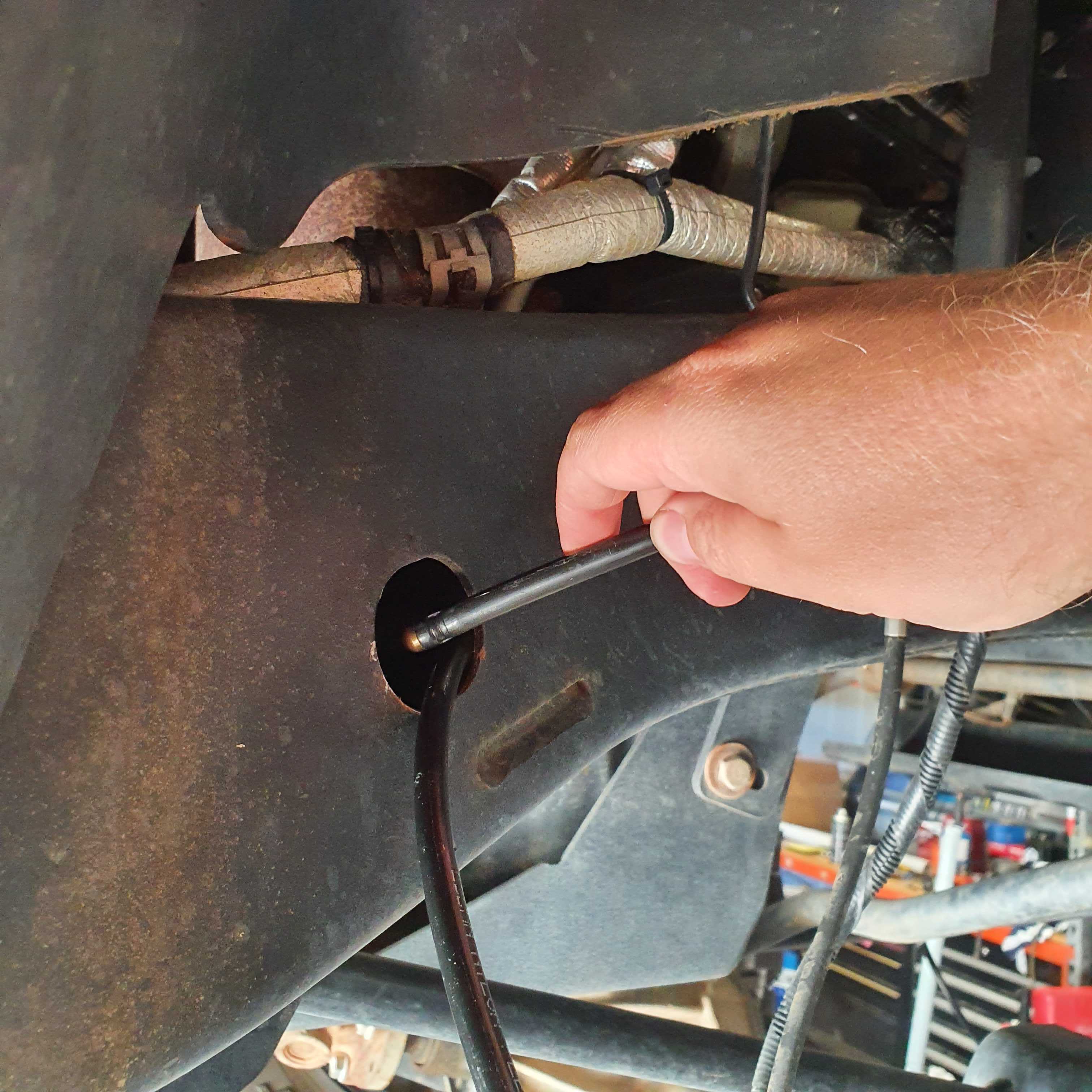 Starting at the end nearest the bracket mounting location, feed the perforated tubes down the chassis rails.