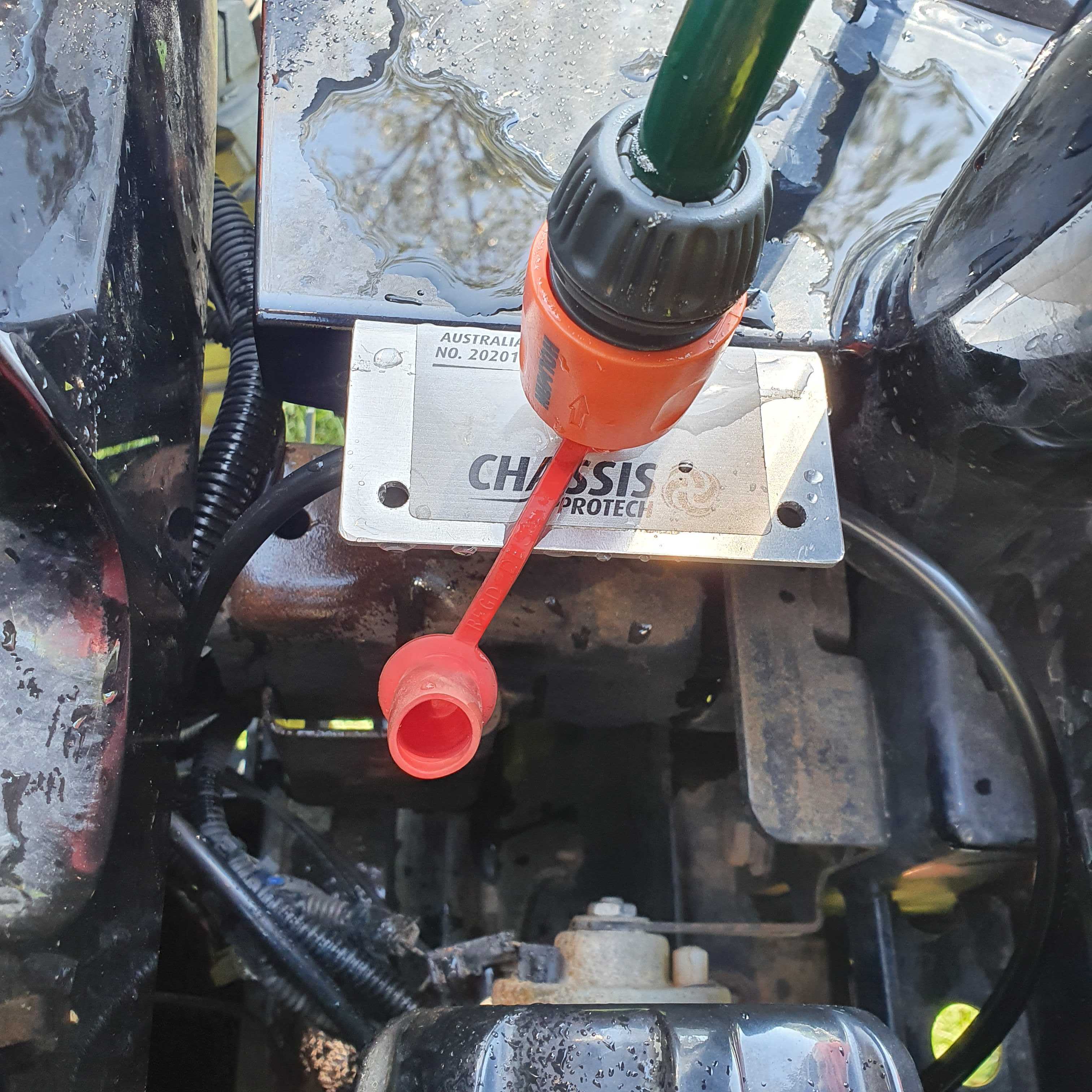 Chassis Protech is a perforated tube that you snake through the chassis rails down both sides. Once installed, a hose is connected to a