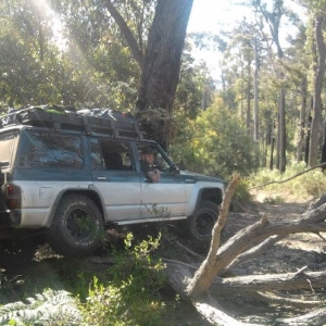 Every 20m or so there was an obstacle like a fallen tree to remove or go round or lift up, the track ended up dividing and we drove down one that seem to take forever only to be cut off by a massive fallen tree so we had to turn round again, steep drop offs that scare the daylights out of me specially whilst my kiddy’s were in the car. Needless to say it was fun but was an unexpected long detour on our trip home even if my 6yr old was watching a 4wd action dvd about the Victorian high country whilst we were in the thick of it.