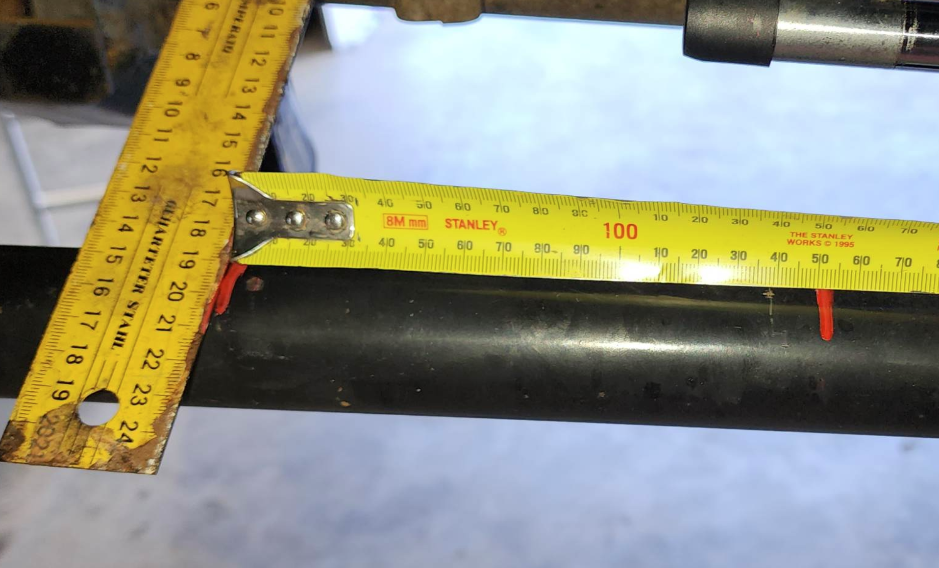 After making two marks, use a tape measure or ruler to measure the distance between them. Measure the distance between the steel square side of each mark, rather than the centers or outside edges, for the most accurate measurement of your steering travel.