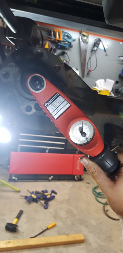 Pinion preload is measured by it's rotational torque. To do this the pinion is installed into the bare diff and the pinion nut tightened enough so that there is no play back and forth. The pinion is then turned at a steady rate whilst watching the dial or needle on the inch/lbs torque wrench.