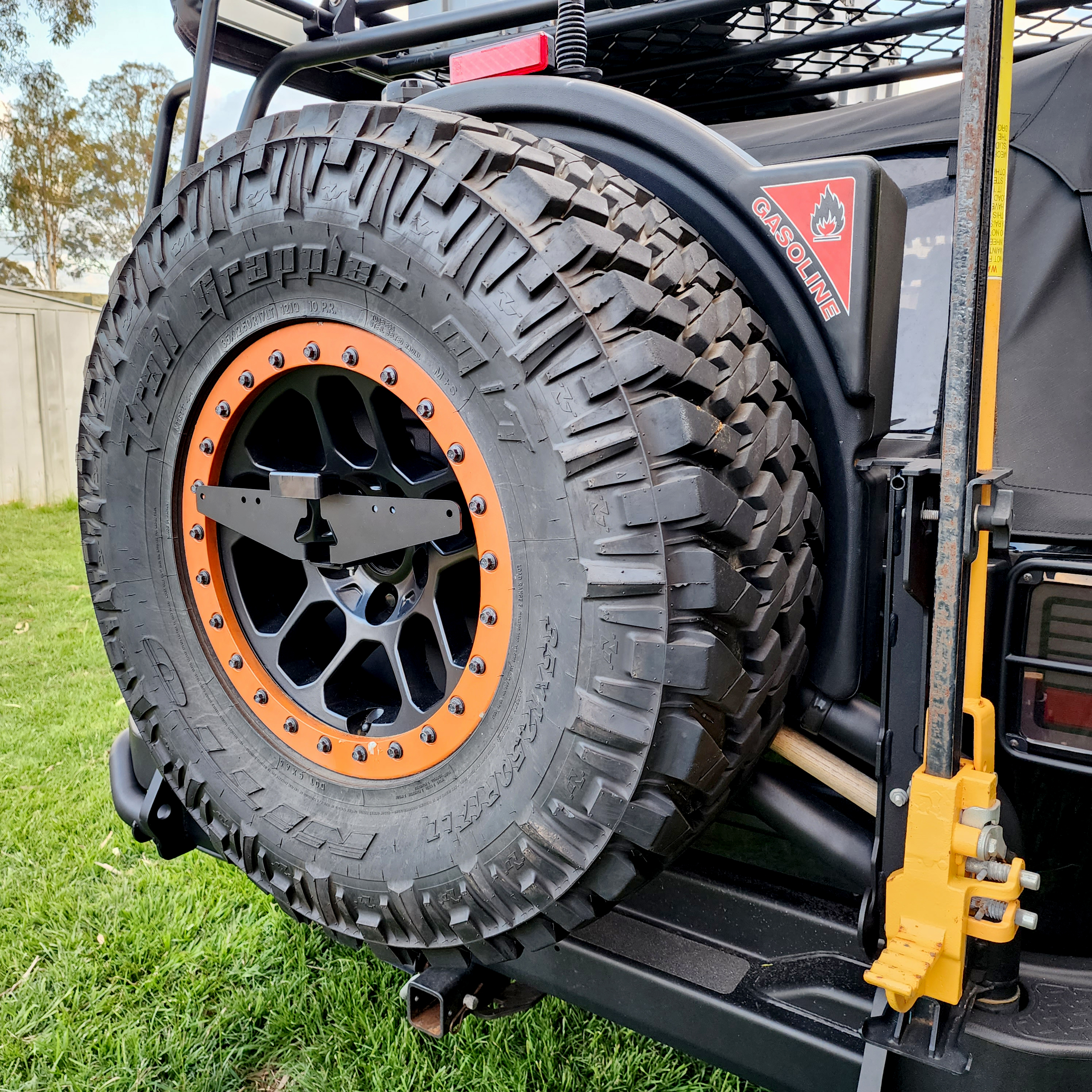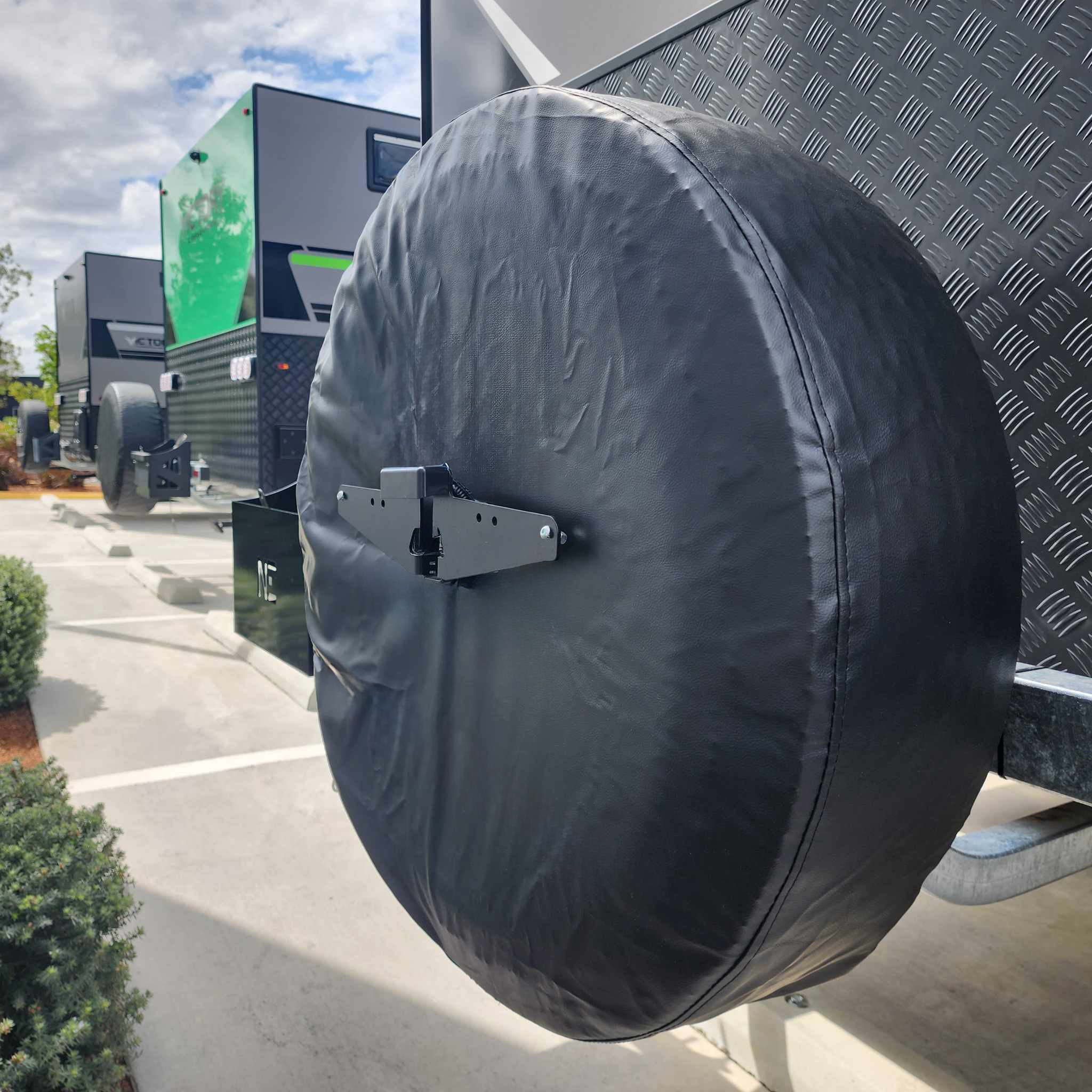 A good example is the JK Jeep Wrangler which mounts the plate in the rear bumper from factory, but when you upgrade to an aftermarket bar, there’s nowhere legal to put it. People zip tie the plate to the spare tyre, but there’s no light, and that’s not legal. Tough Toys has designed a universal relocation bracket that works for 4WDs and caravans. It’s got a proper LED plate light built in and fits heaps of 5-stud and 6-stud wheel patterns.