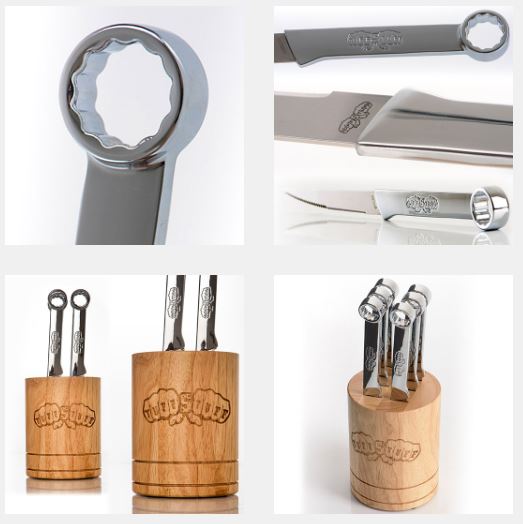 Your knives are cradled in a piston and socket-inspired block, complete with rubber feet for stability, mirroring the robustness of a well-oiled machine. It’s not just a knife set; it’s a piece of the garage brought to the dinner table, a slice of the life that pulses with adrenaline and precision engineering.